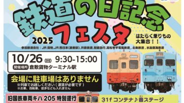 【倉敷市】はたらく乗り物大集合!2025鉄道の日記念フェスタが10/26!