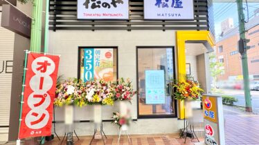 北区 【岡山市北区】表町商店街につくってる「松屋・松のや岡山表町店」に看板ついてる。4月28日10時オープン
