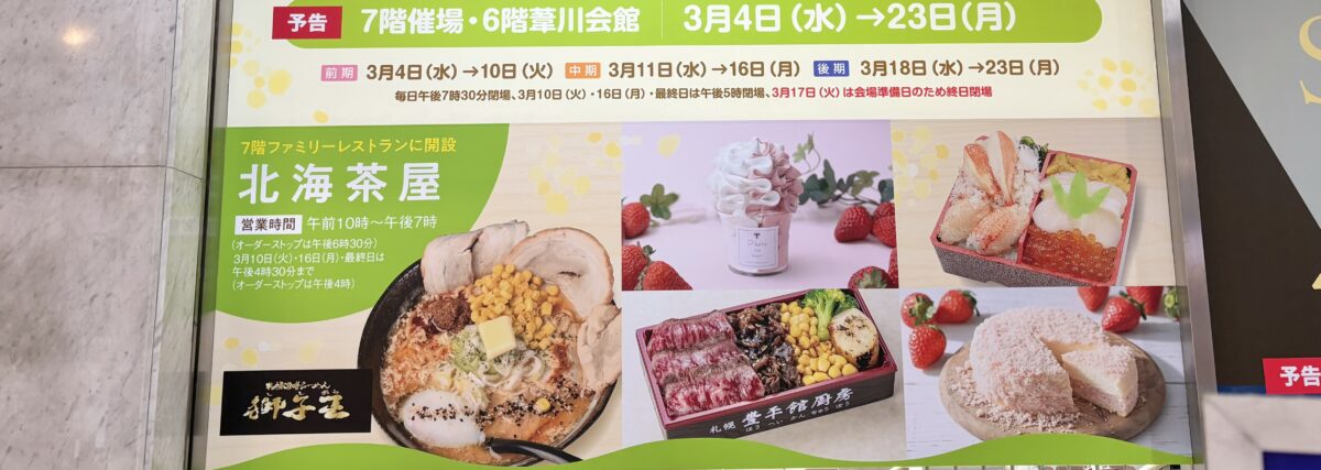 岡山天満屋で「第23回 春の北海道物産と観光展」が開催されるようです。