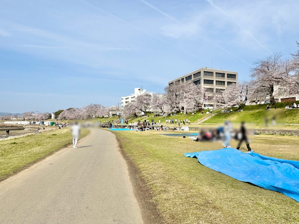 旭川沿い河川敷で開催中の「2026岡山さくらカーニバル」、4月3日の様子を見てきました。
