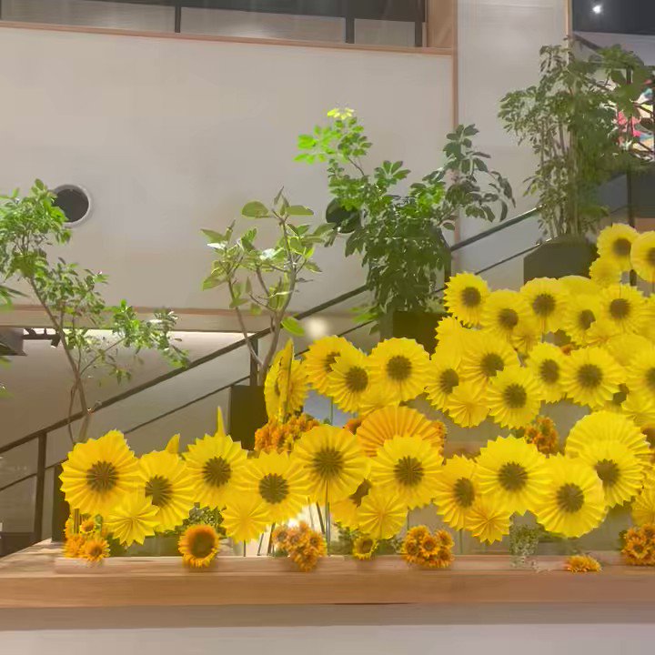 杜の街プラザ中央階段には満開のひまわり畑をイメージしたフォトスポットが本日6月27日から常設されてます。(8月25日まで)