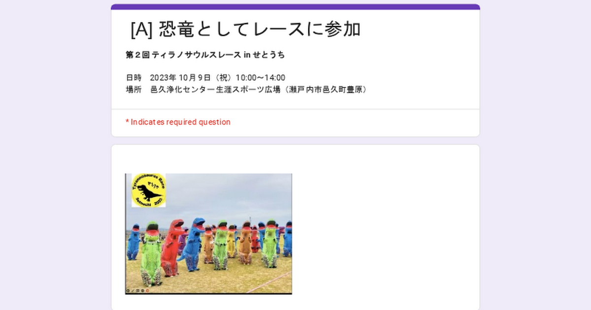 邑久浄化センター生涯スポーツ広場で「第2回ティラノサウルスレース in せとうち」が開催されるようです。