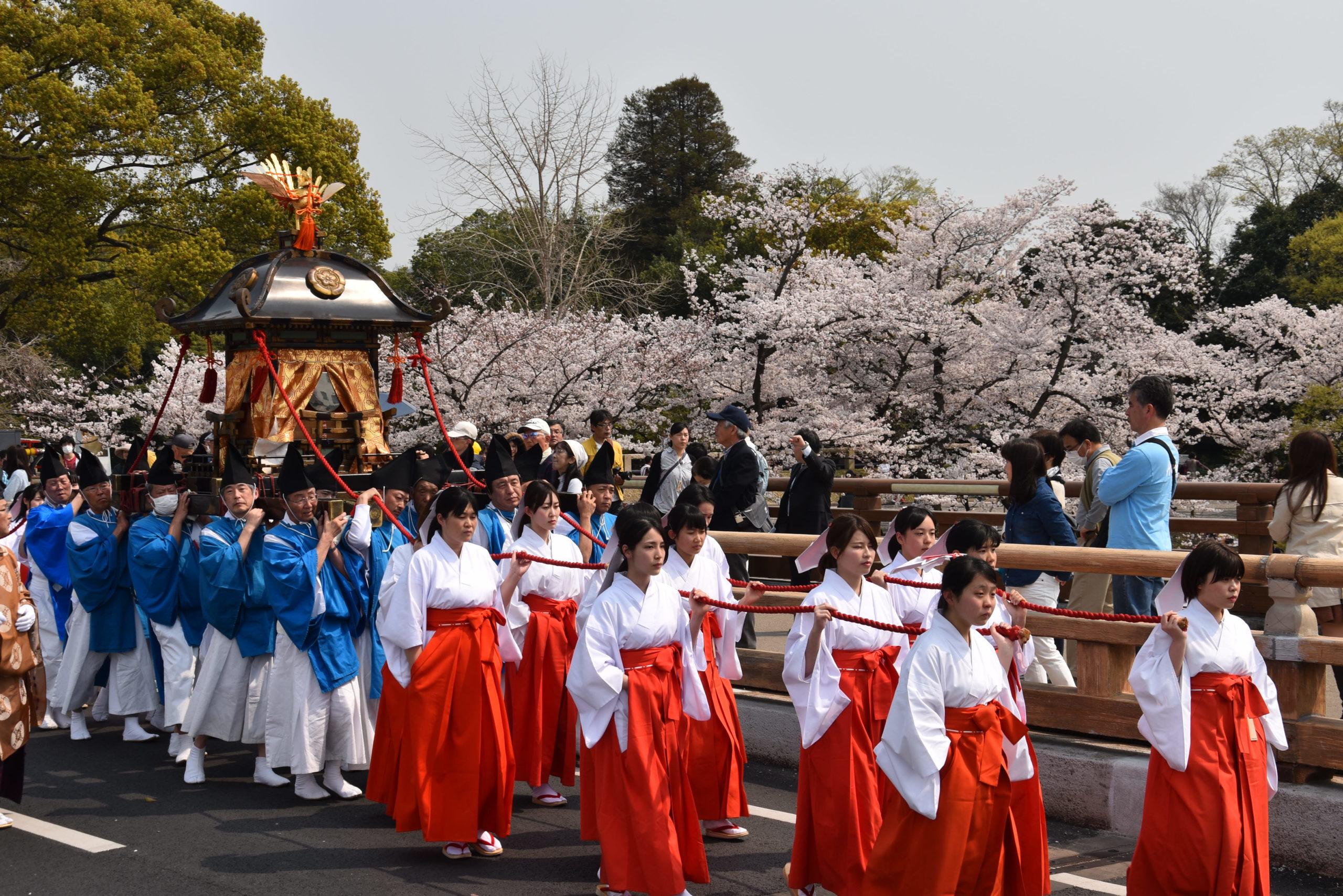 神恩に感謝し、世界の平和と万民の和楽を祈るもので、御輿である御鳳輦(ごほうれん)を中心に約800人の大行列が予定されています。