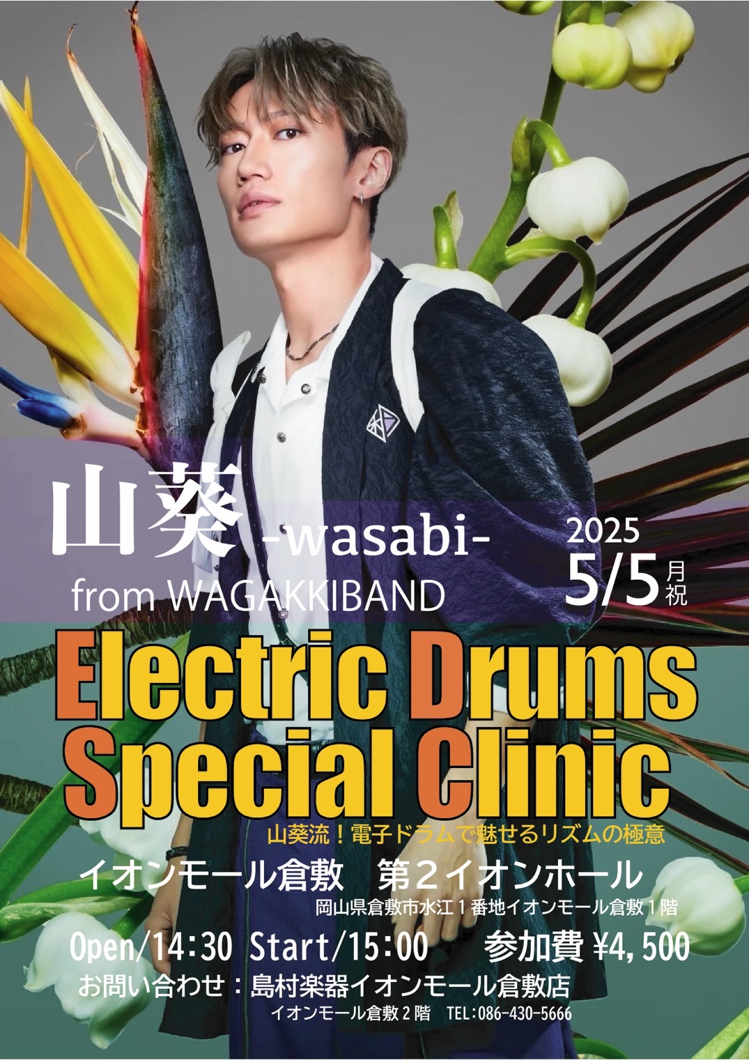 イオンモール倉敷にドラマーの山葵(わさび)さんによる電子ドラムを使用したドラムセミナーが開催されるそうです。