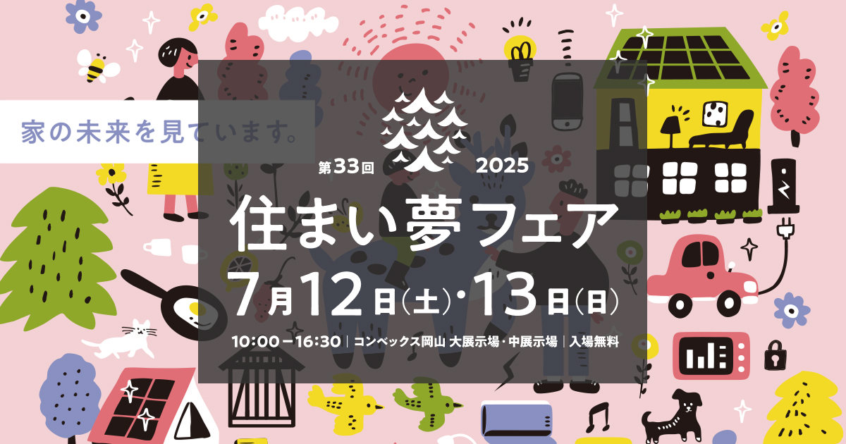 性能の高さも、デザインや素材の豊富さもおまかせあれ! 一生付き合っていけるパートナーが見つかる2日間。「第33回 住まい夢フェア」は「長く住み続けられる家づくり」を使命とし、住宅建築会社・住宅設備などのメーカーが集結した中四国最大級の住まい...