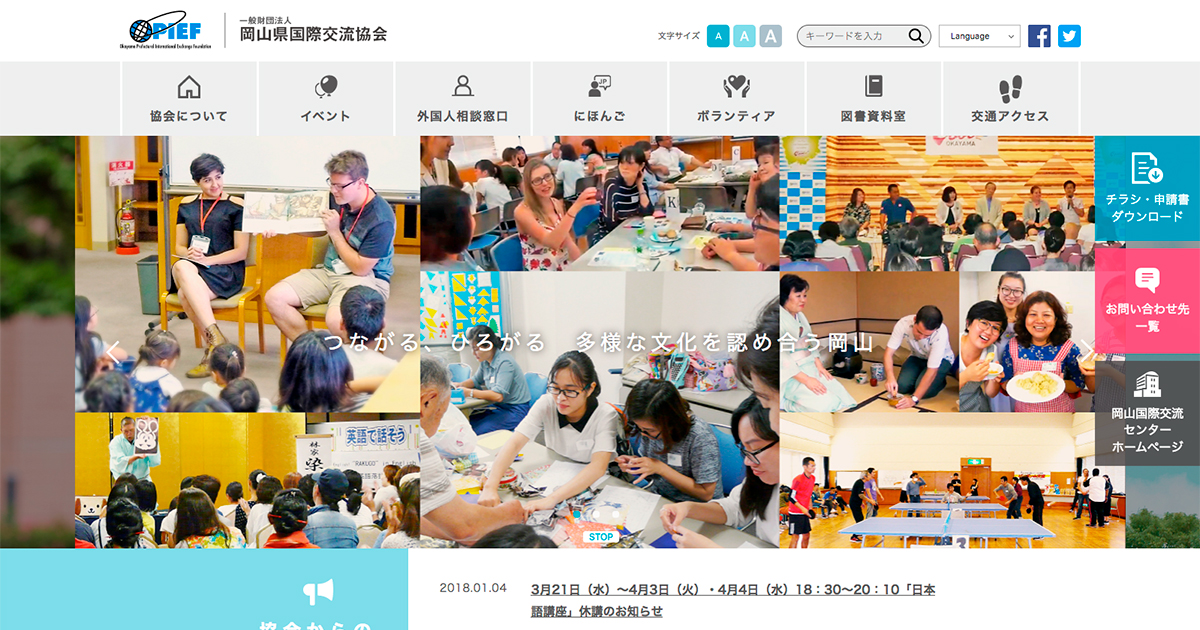 (一財)岡山県国際交流協会は国際交流のための、イベント情報、外国人のための生活情報(相談・支援・留学・NGO・ボランティア情報)などを発信しています。