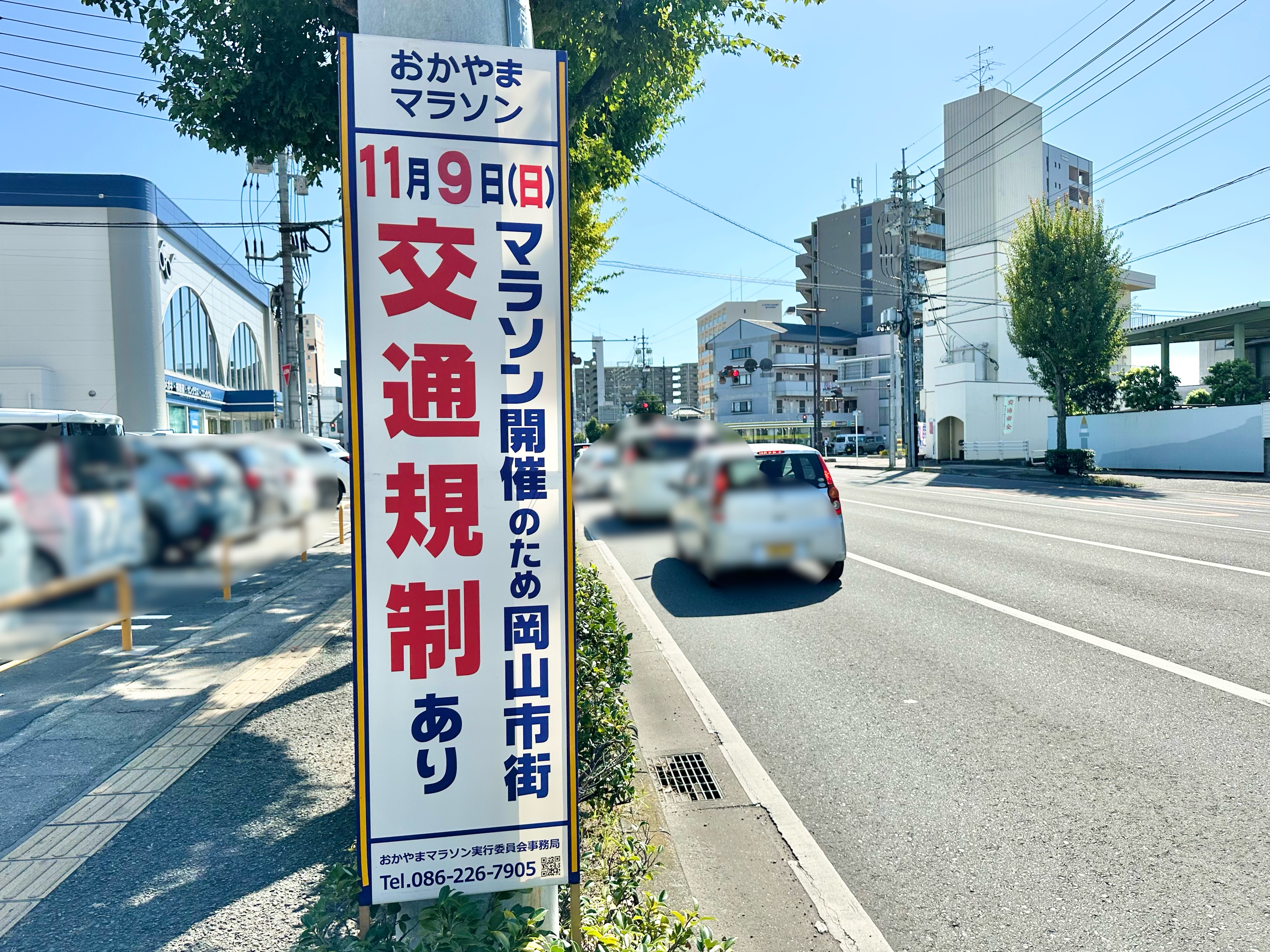2025年11月9日、岡山市内で開かれる「おかやまマラソン2025」により交通規制が行われるようです。