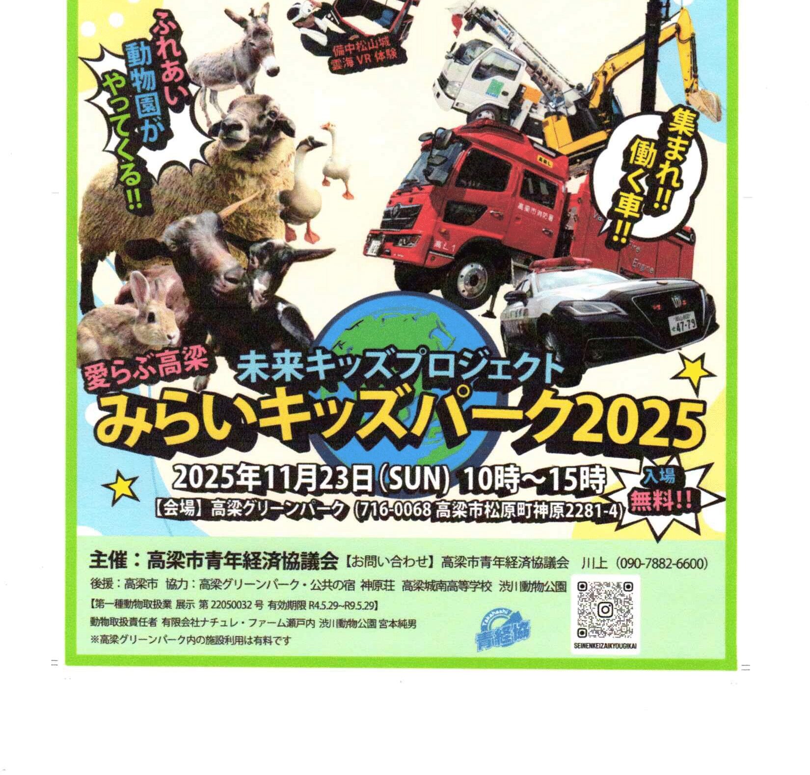 高梁グリーンパークで「みらいキッズパーク2025」が11月23日に開催されるようです