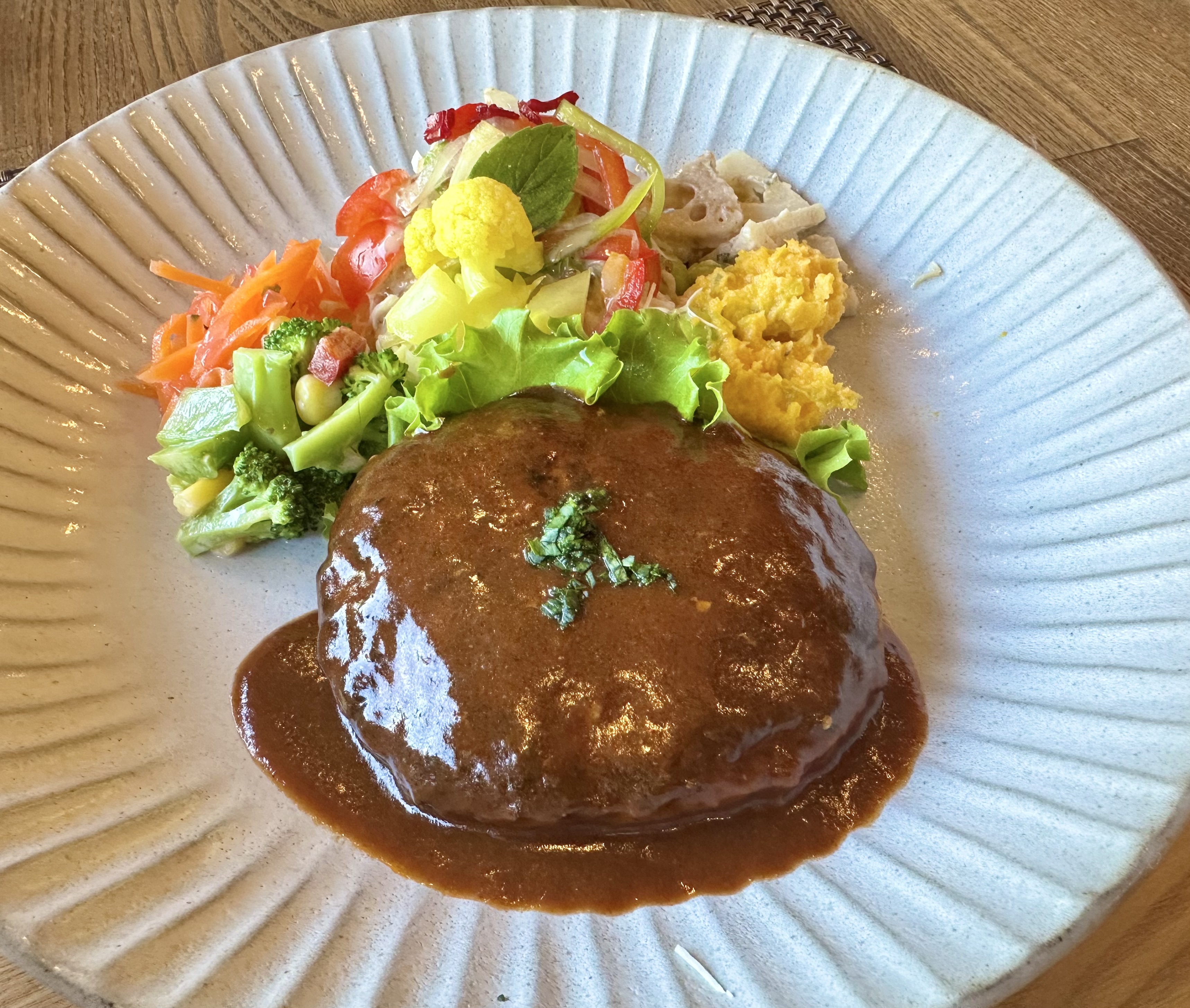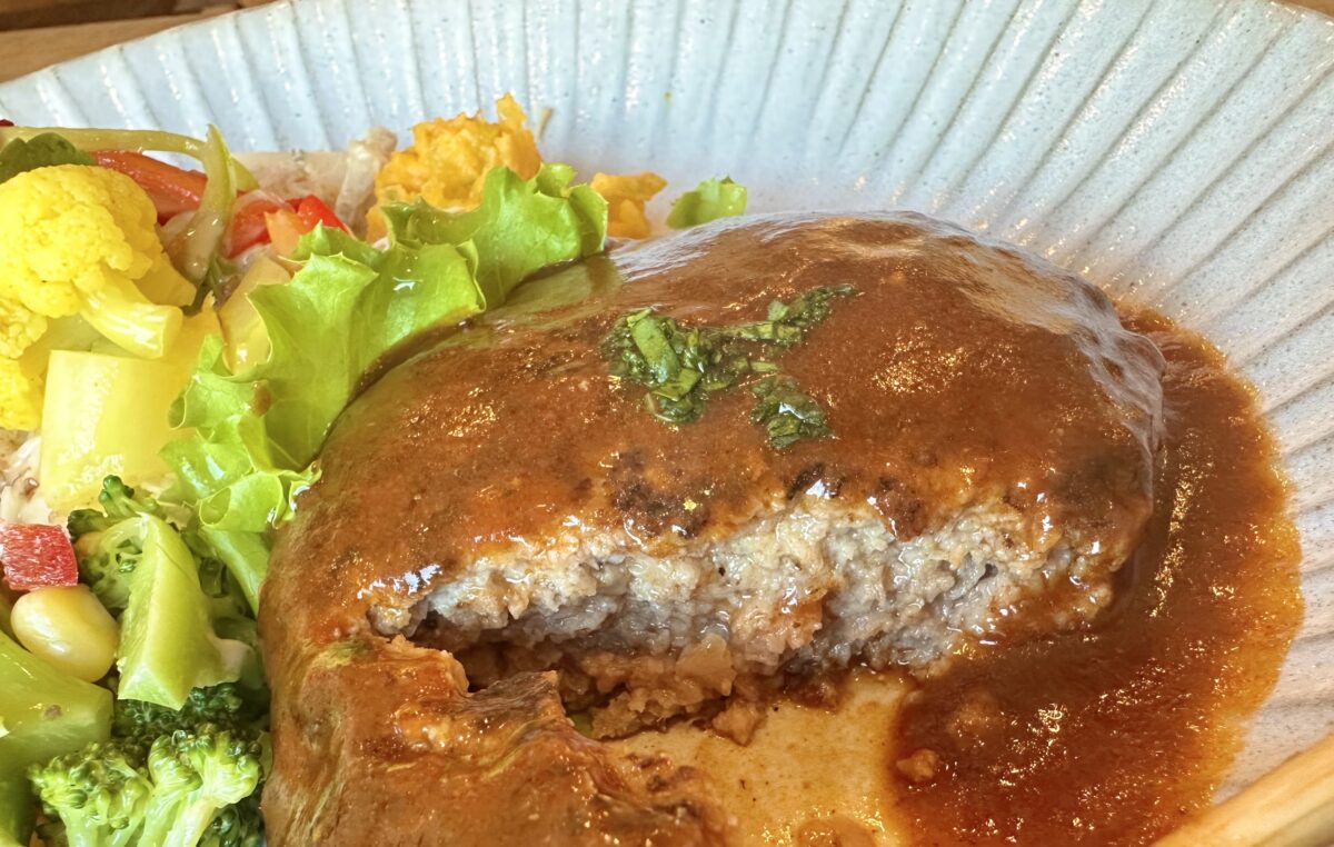 メニュー表にもあった通り、脂身が少なく優しくヘルシーな味わいなのにしっかりとした食べ応えがあります。自家製のデミグラスソースもコクと旨味がたっぷり!
