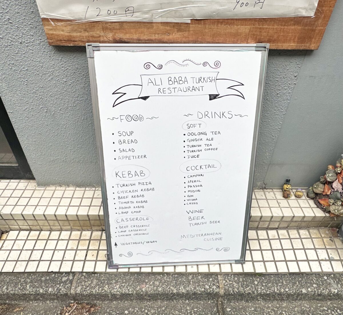 メニューにはチキンケバブ、ひよこ豆と肉のトマト煮込、