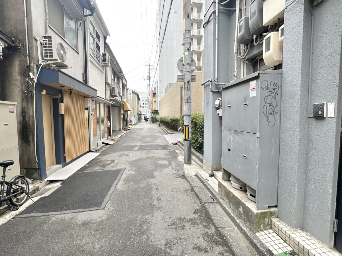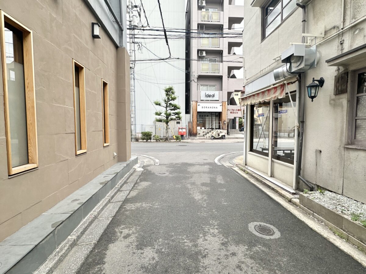 お店から右を見ると、「鮨 竜心」さんがあって、ここを抜けると、おかやま信用金庫本店の裏です。