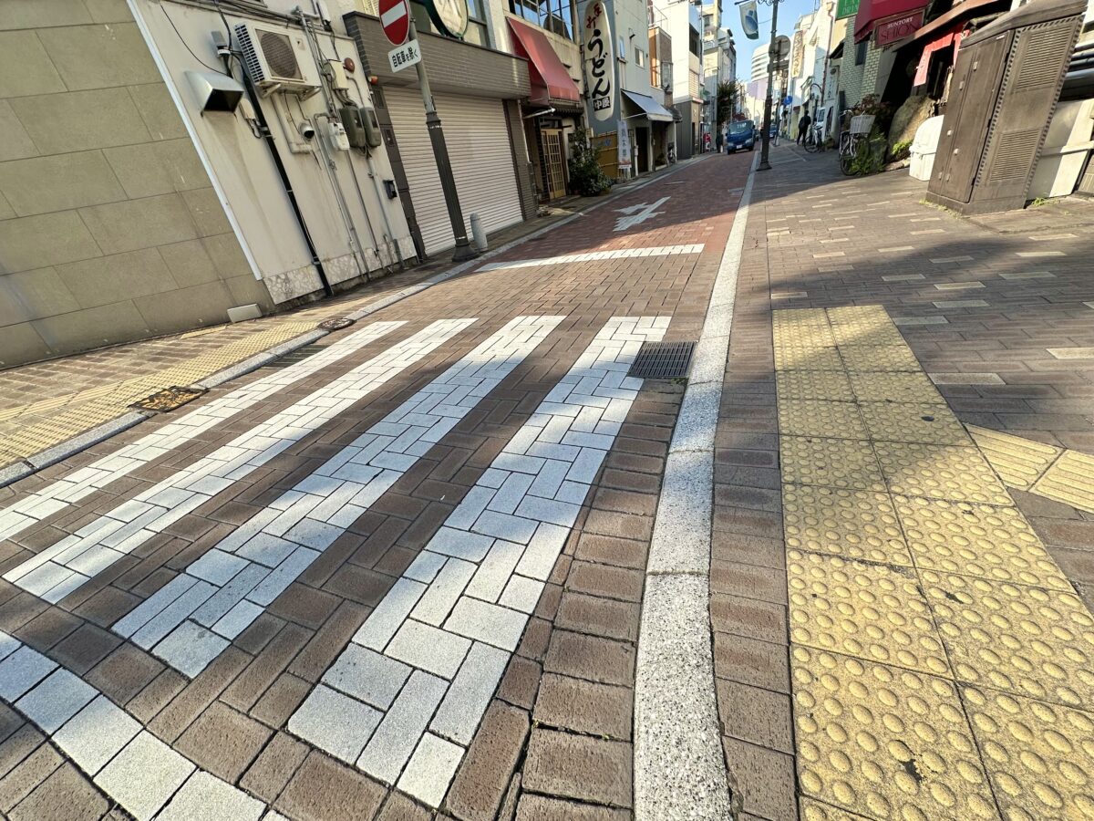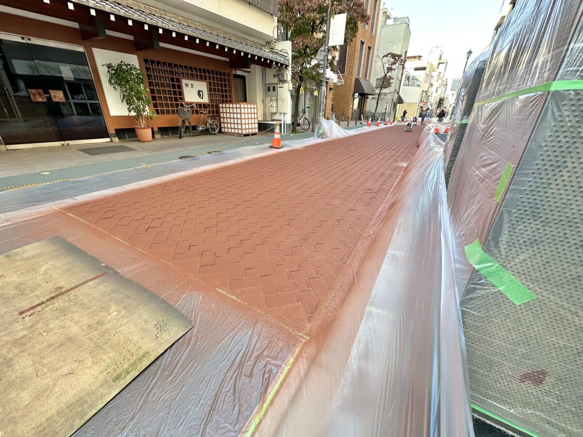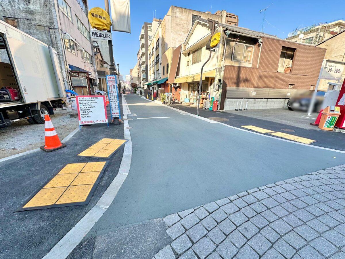 場所で言うとあくら通りから数百メートルくらいなんですが、レンガで敷き詰められた趣のあるオランダ通りがここだけアスファルトになってました。