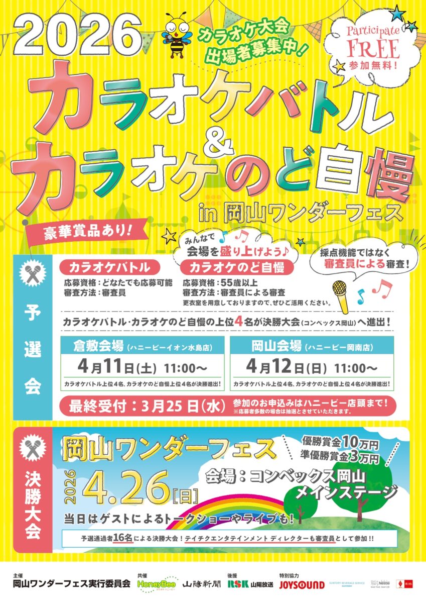 2026年4月25日(土)~4月26日(日)と、その周辺で岡山イベントスケジュールをおにさんぽの独断と偏見でいくつかピックアップ!