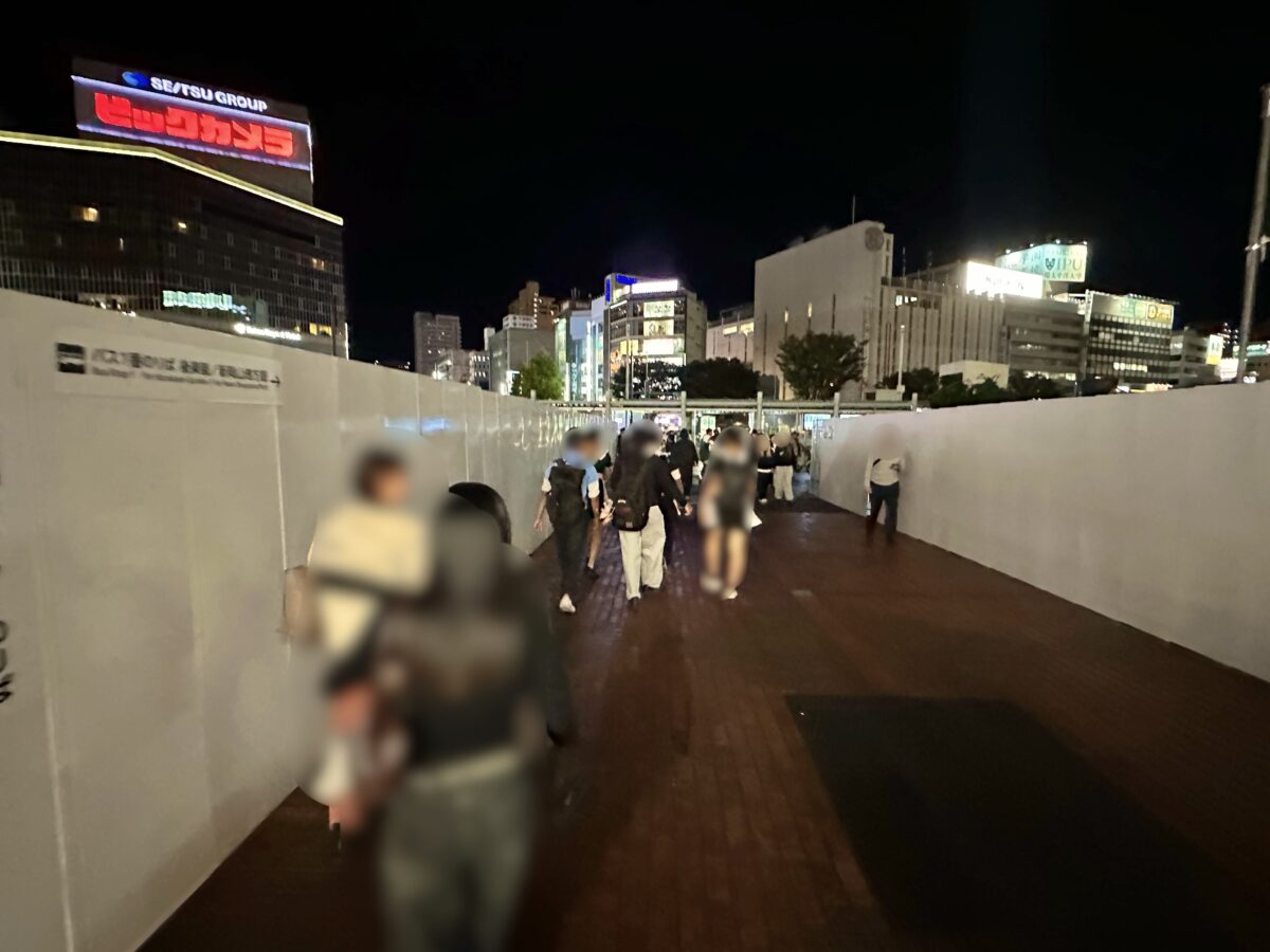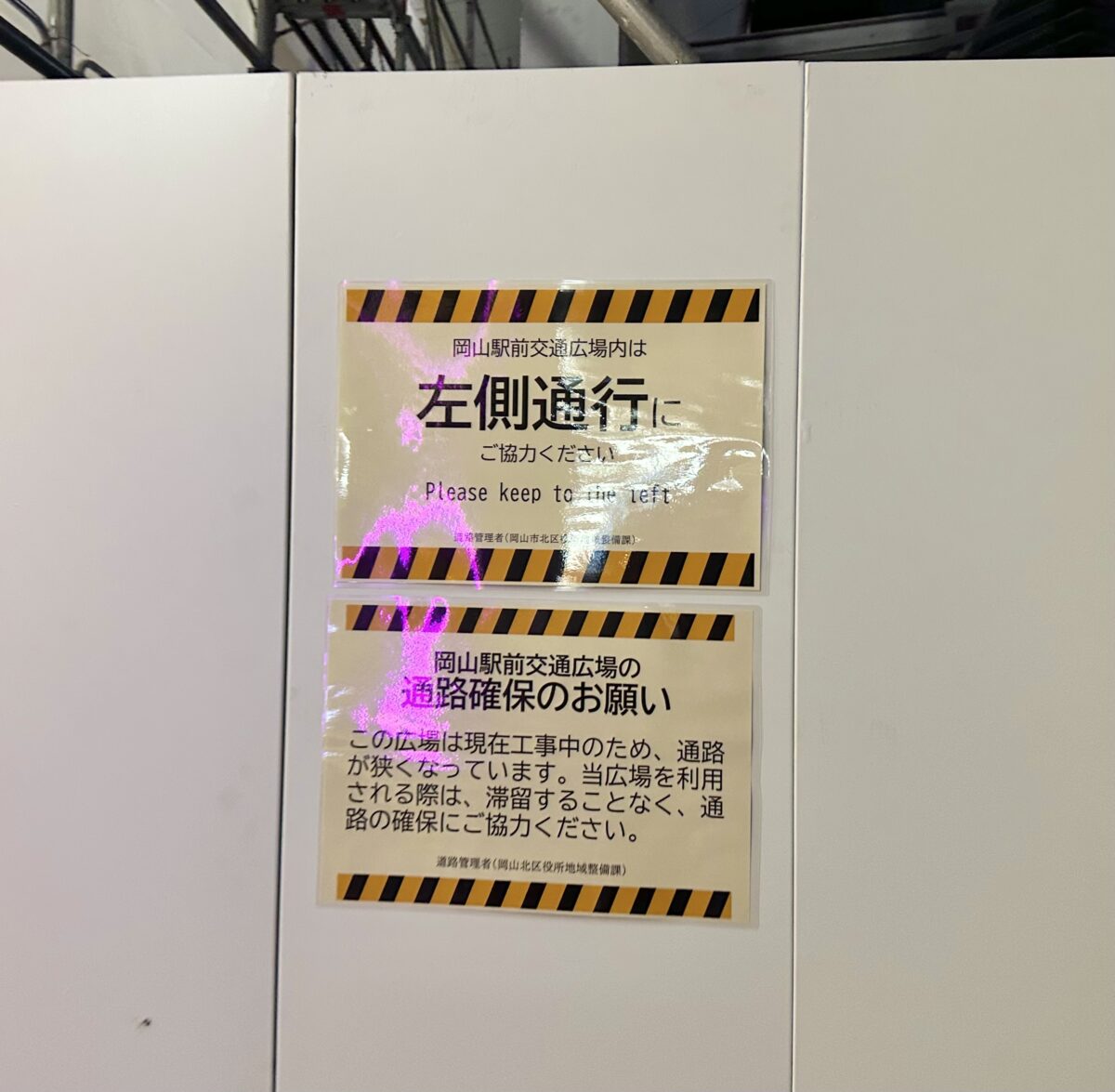 コスプレしている人も結構いますが、このように通路が狭い2025年の岡山駅前。