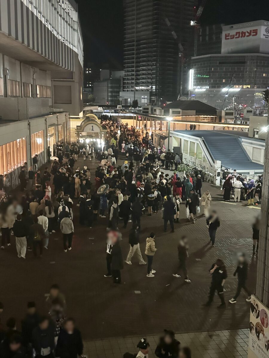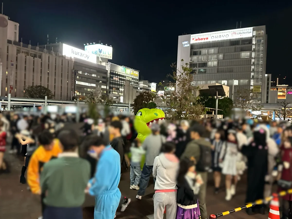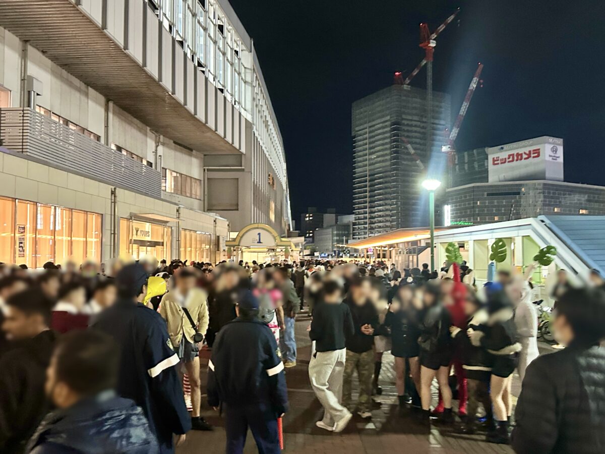 毎年大混雑するハロウィン岡山駅前の様子です。