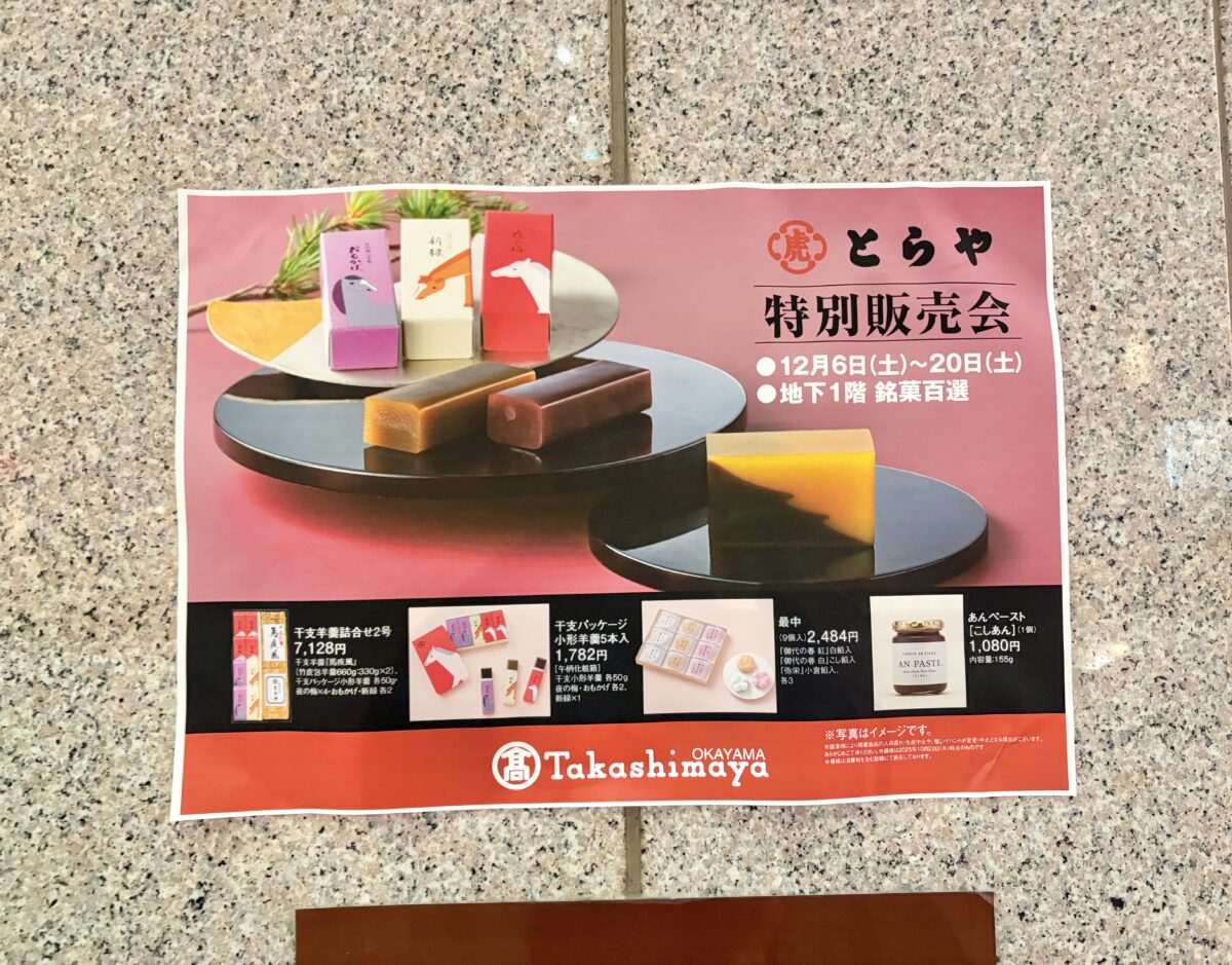 岡山高島屋で「とらや」の特別販売会が開催されるようです。