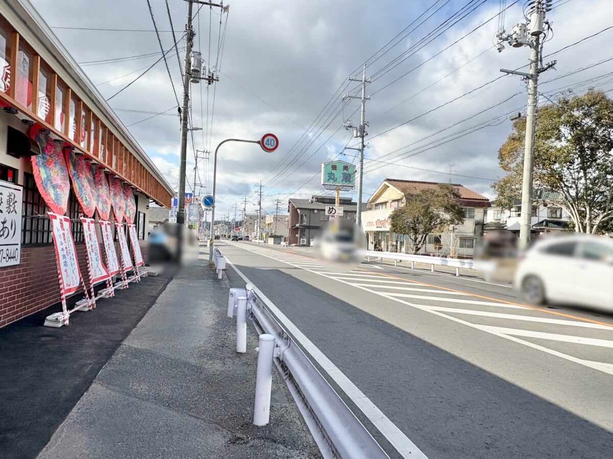 こちらには焼肉丸蔵があって、まっすぐ行くと益野交差点。