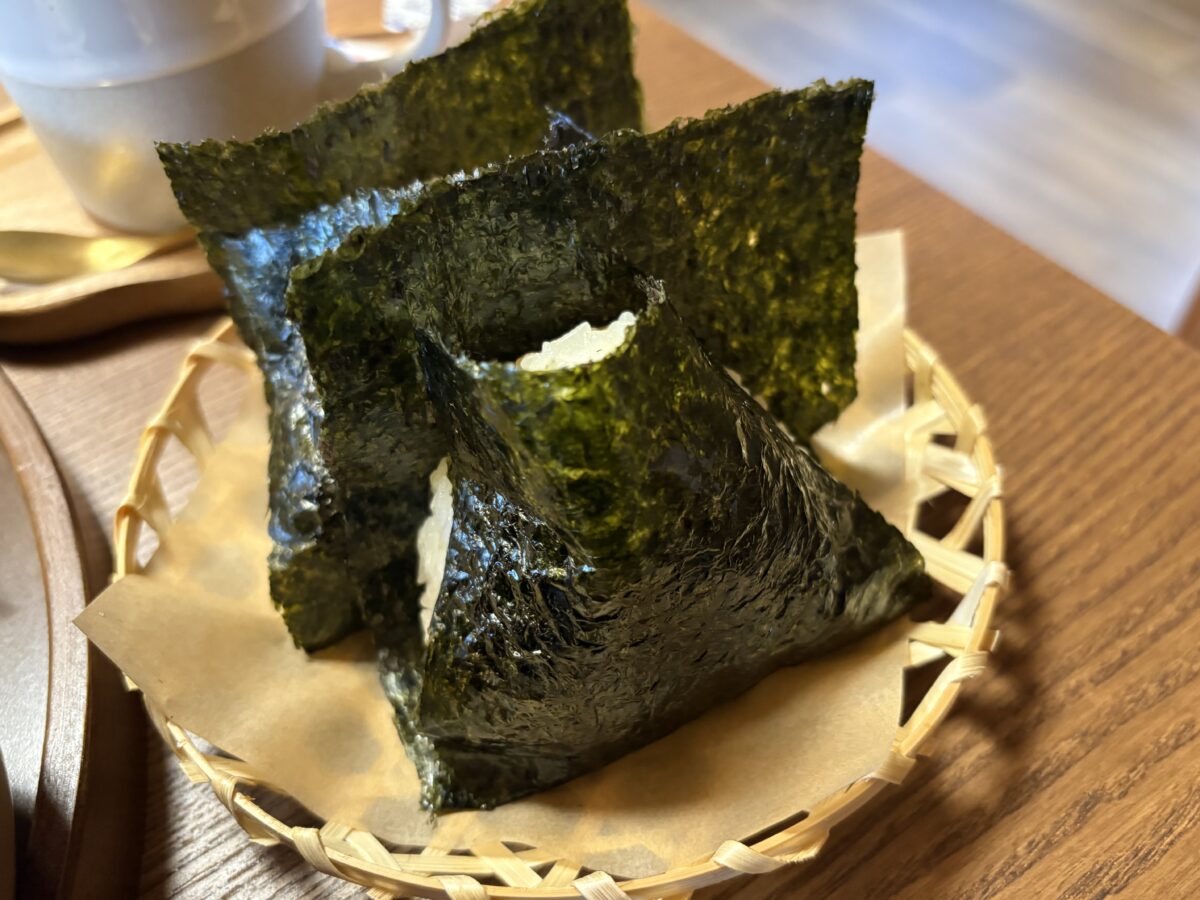 お肉を食べるとお米を食べたくなってきます。おにぎりにかぶりつくと粒の弾力もしっかりしていて高級おにぎりだ…