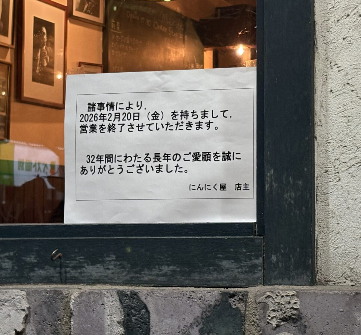 倉敷市の松島にある「にんにく屋」さんが閉店するようです。