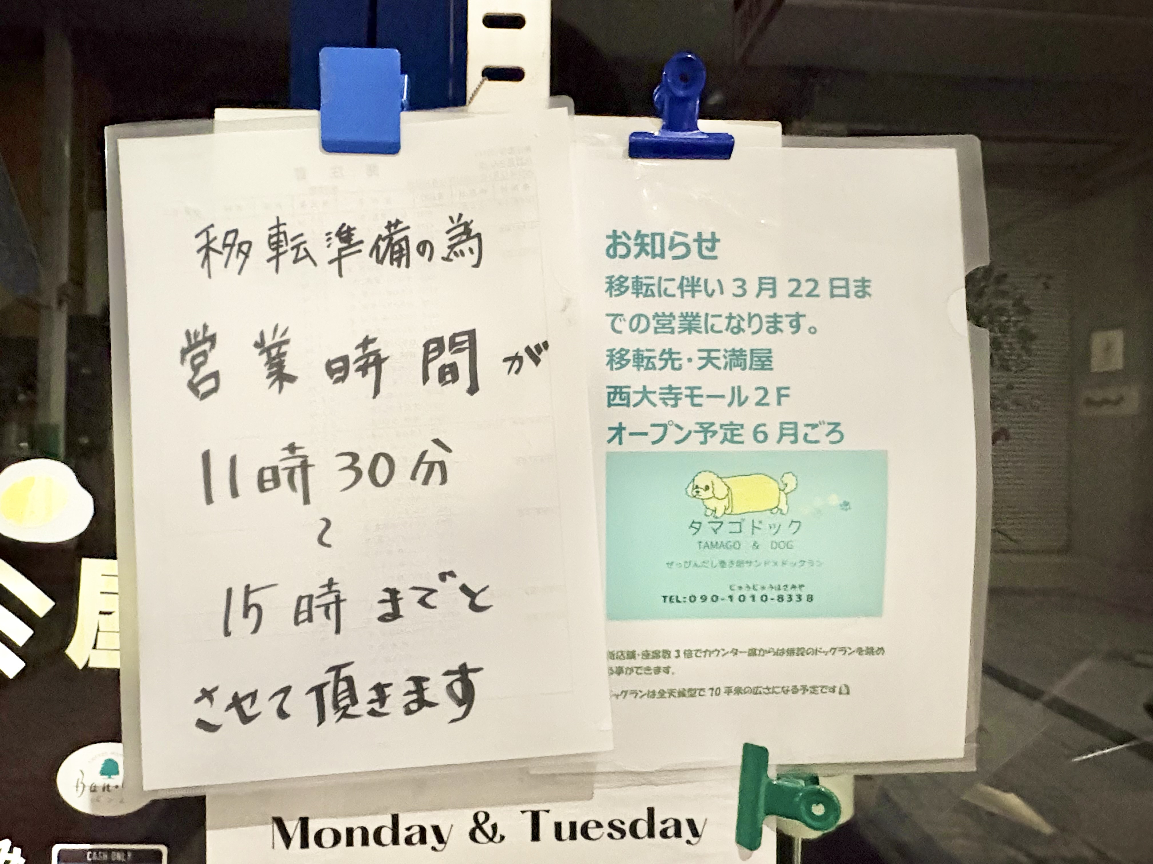 奉還町商店街の「タマゴハサミ屋」さんが移転するようです。