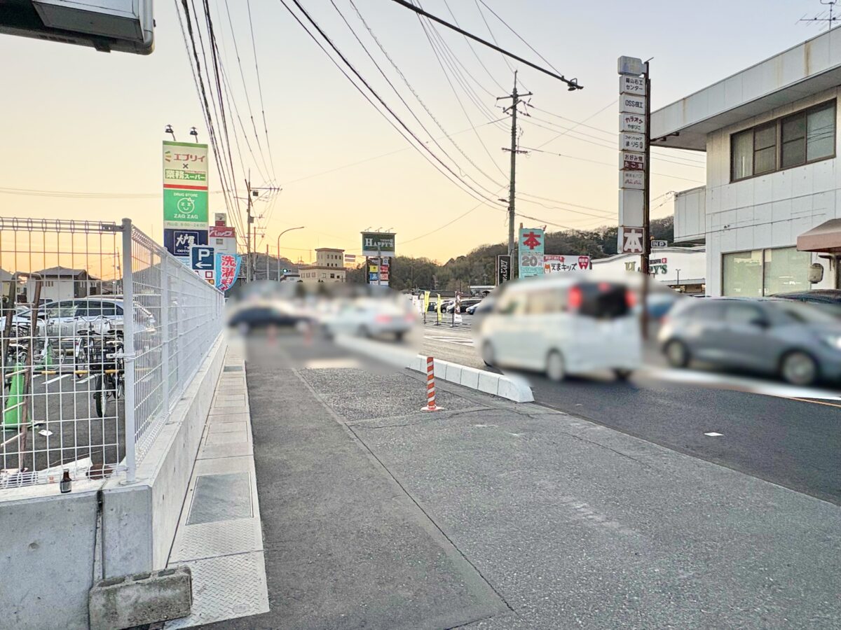 右を見ると「ハローズ 円山店」、「ドラッグストア マツモトキヨシ 山崎店」、富山小学校がある方です。