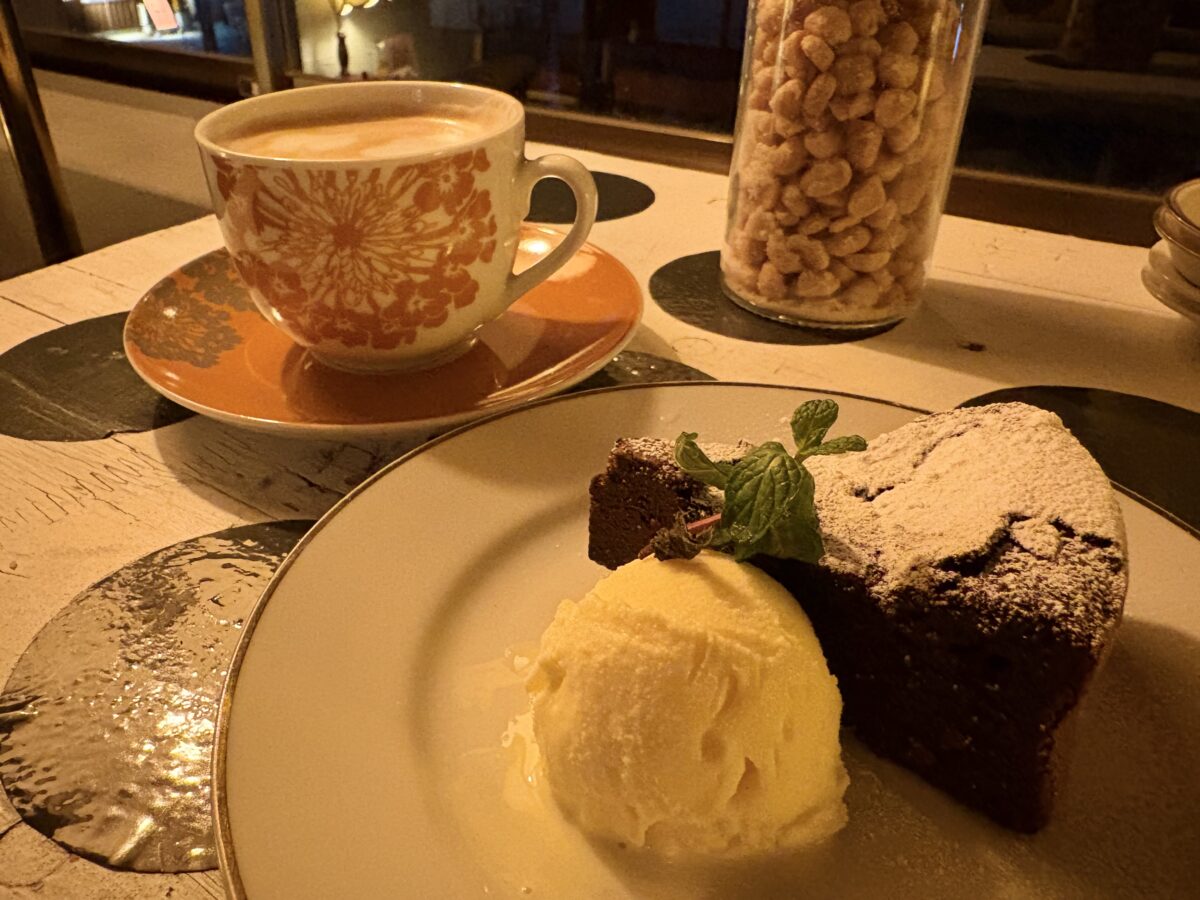 頼んでみたしっとり濃厚なガトーショコラとカフェラテです。