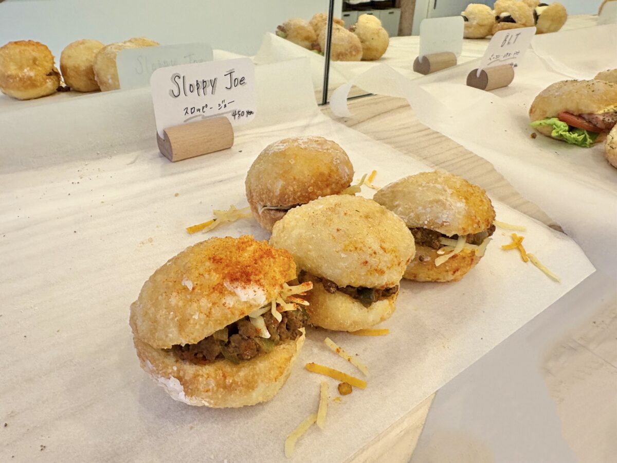 メニューにはココナッツシュガー、バナナカスタードクリーム、ブルーベリークリームチーズ、あんこバター、ベーコン・レタス・トマト、スロッピージョーなど。