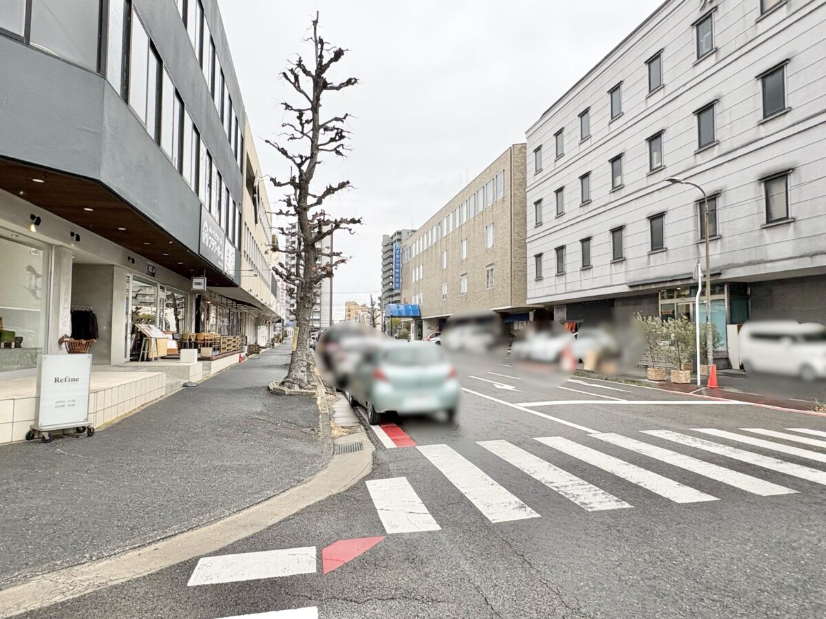 現在の「流儀」さん、新しい韓国料理屋さんができるビルから左を見ると「天満屋ハピーズ卸センター店」の裏を通る道。