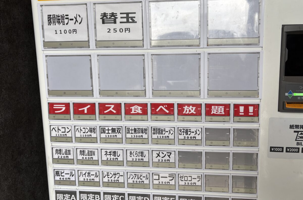 ベトコンラーメンも国士無双もありながら豚骨味噌もあるので、ベトコンラーメンがパワーアップしたお店と言えるんじゃないでしょうか。
