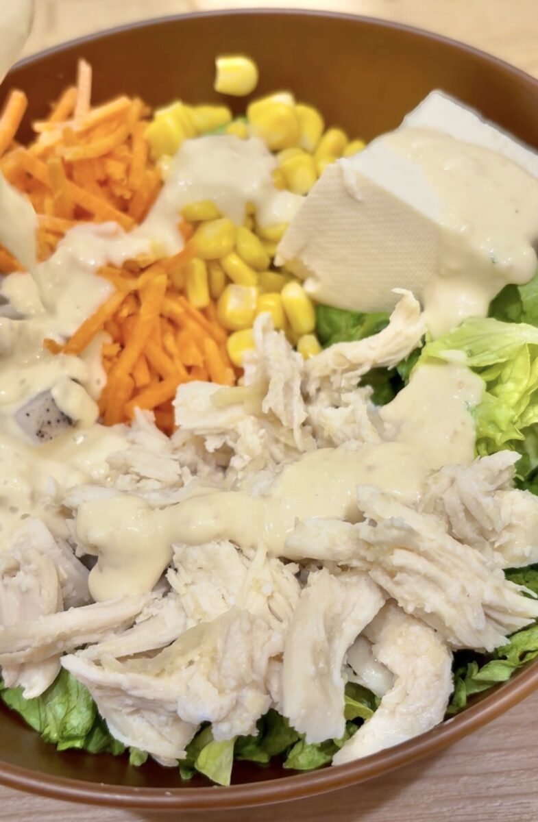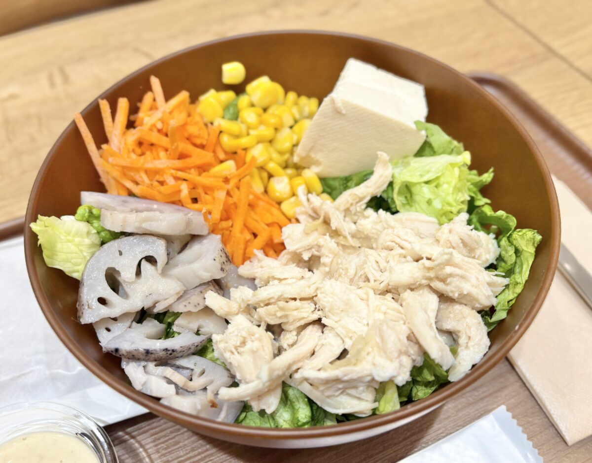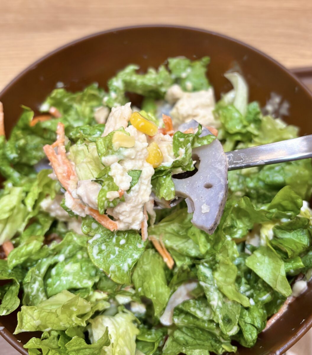 もちろん“サラダを食べている”んですが、野菜やお肉・ドレッシングがいい感じにまとまっていて食べ進めると「定食?丼?」って思ったくらいです。