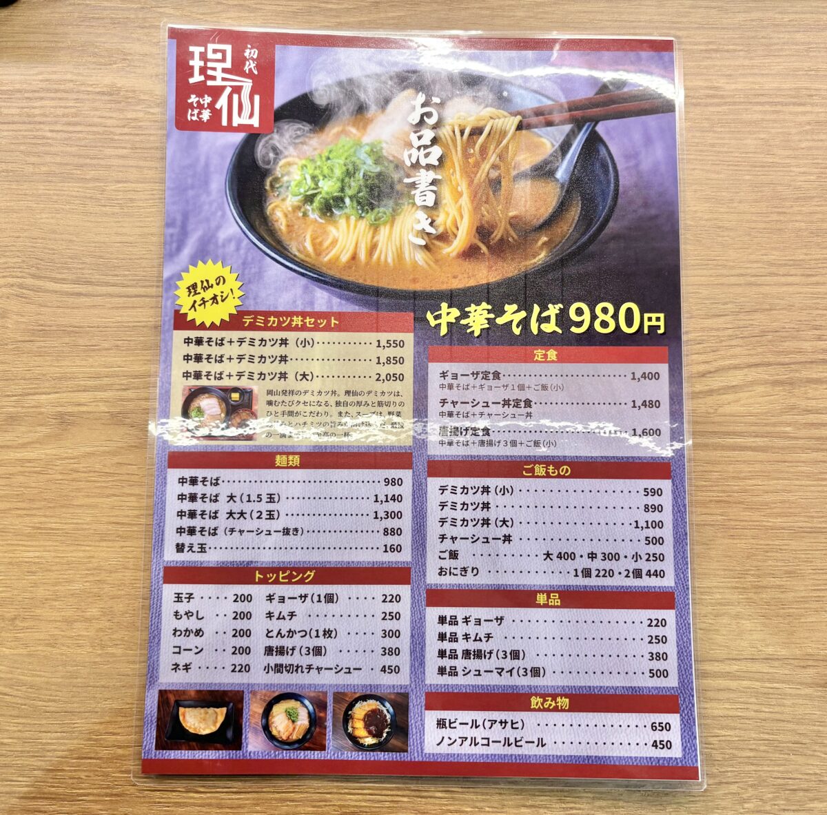 中華そばに岡山グルメ・デミカツ丼のセット、それからトッピングにトンカツなどを一仙の面影があって、以前のお店のファンからするとテンション上がるポイントもいろいろ。