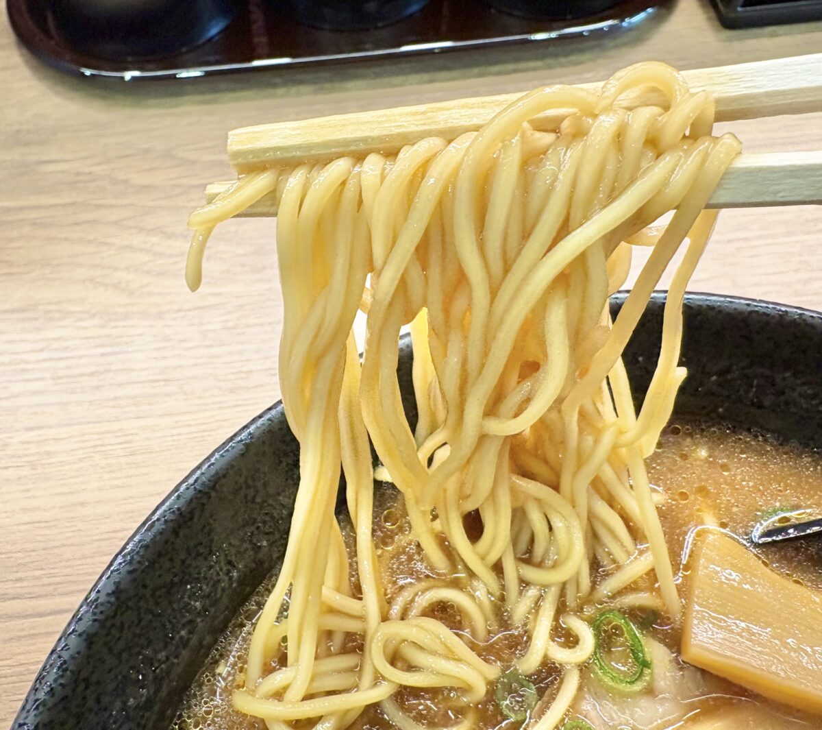 小麦の香り豊かで、スープに負けない麺ですね~。