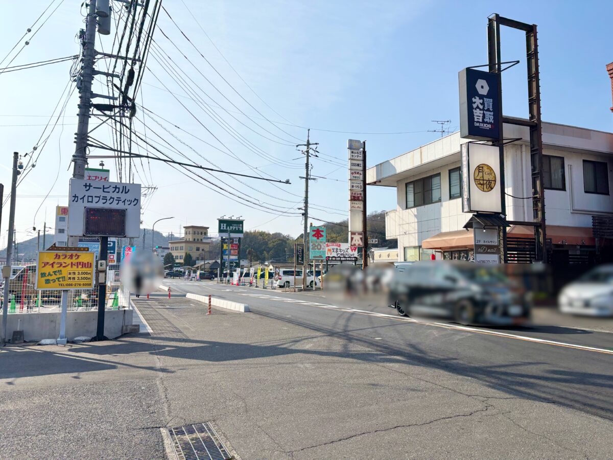 こちらには「エブリイ円山店」や「天満屋ハピーズ円山店」があって、まっすぐ行くと東山峠。