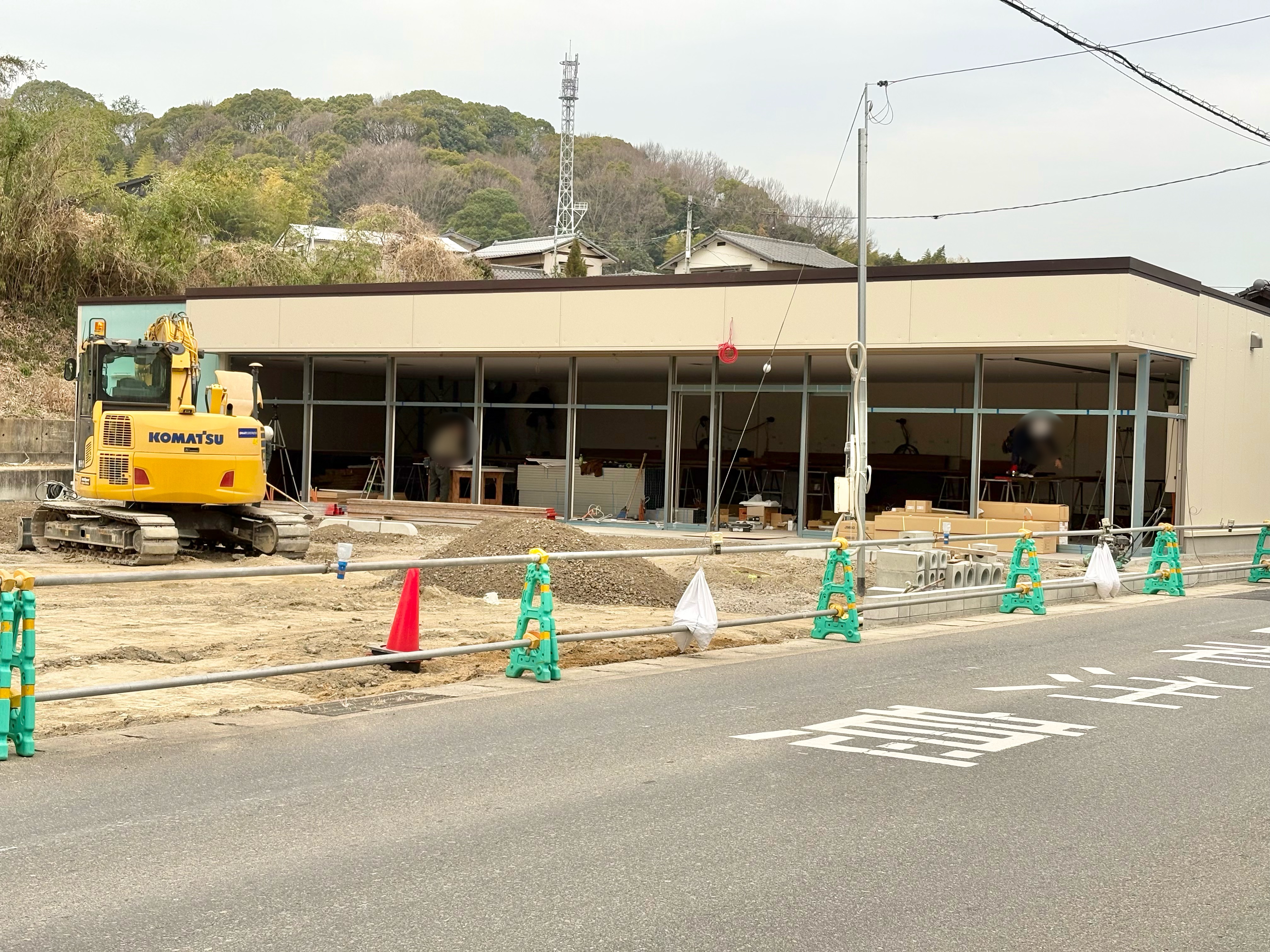 コンビ二の建物や駐車場の工事しています。