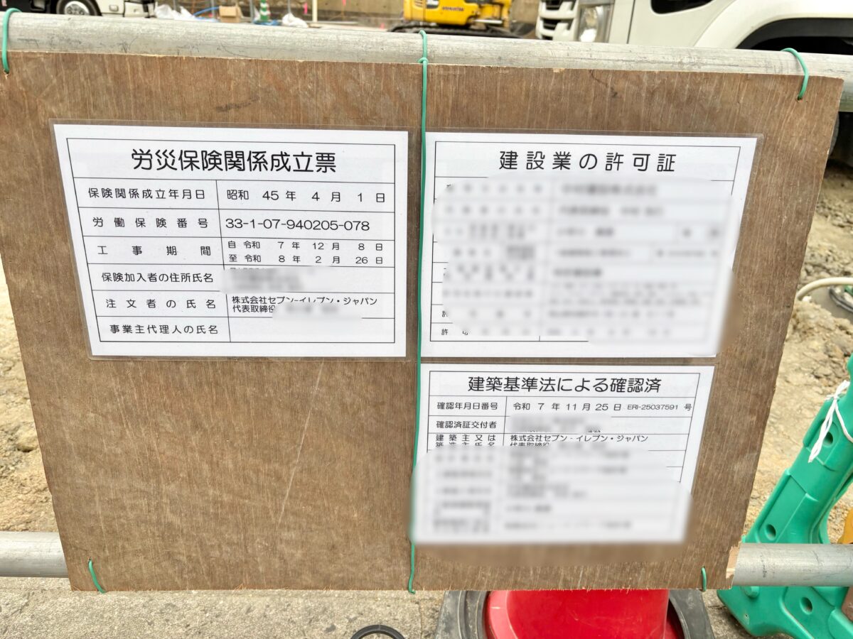工事現場にあったこちらによると、建築主又は築造主氏名のところがセブンイレブンジャパンに。