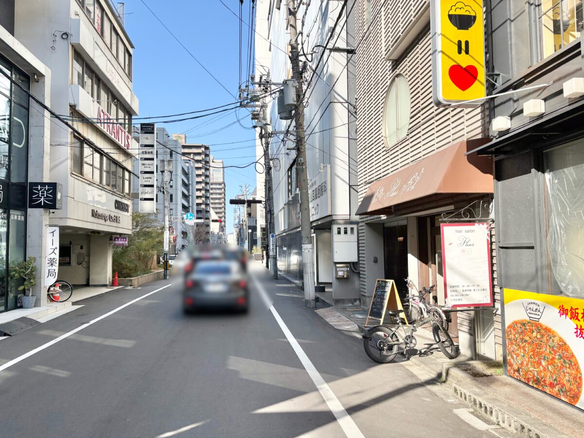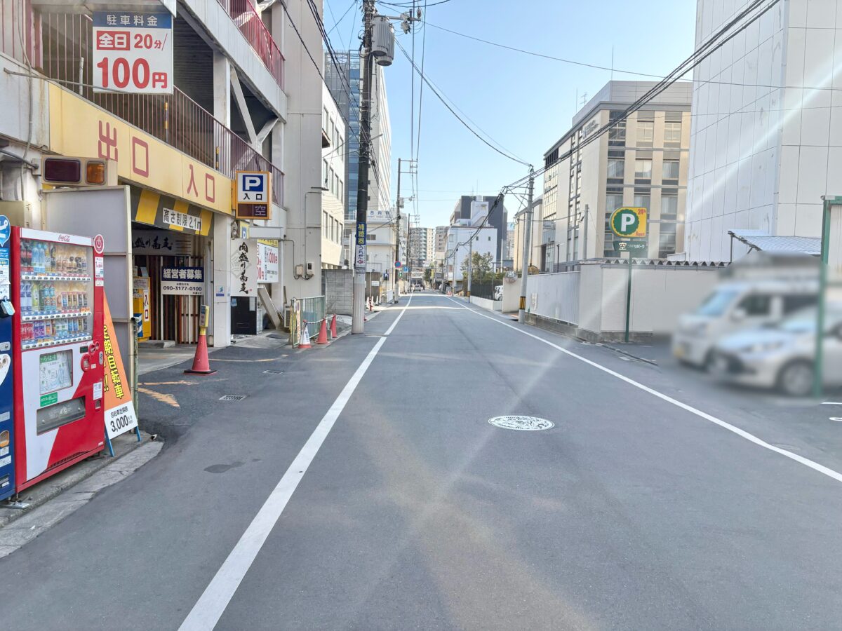 左を見てあくら通り方面には川崎医科大学総合医療センターがあります。