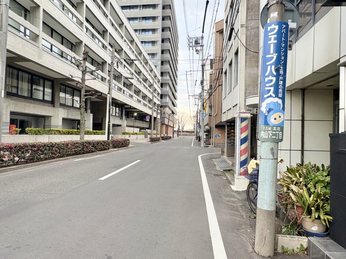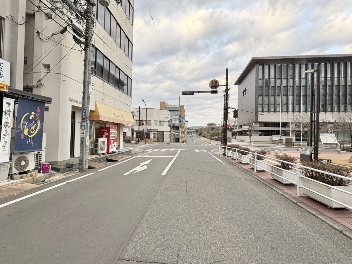 左を見ると岡山県立図書館や石山公園方面の道路があります。