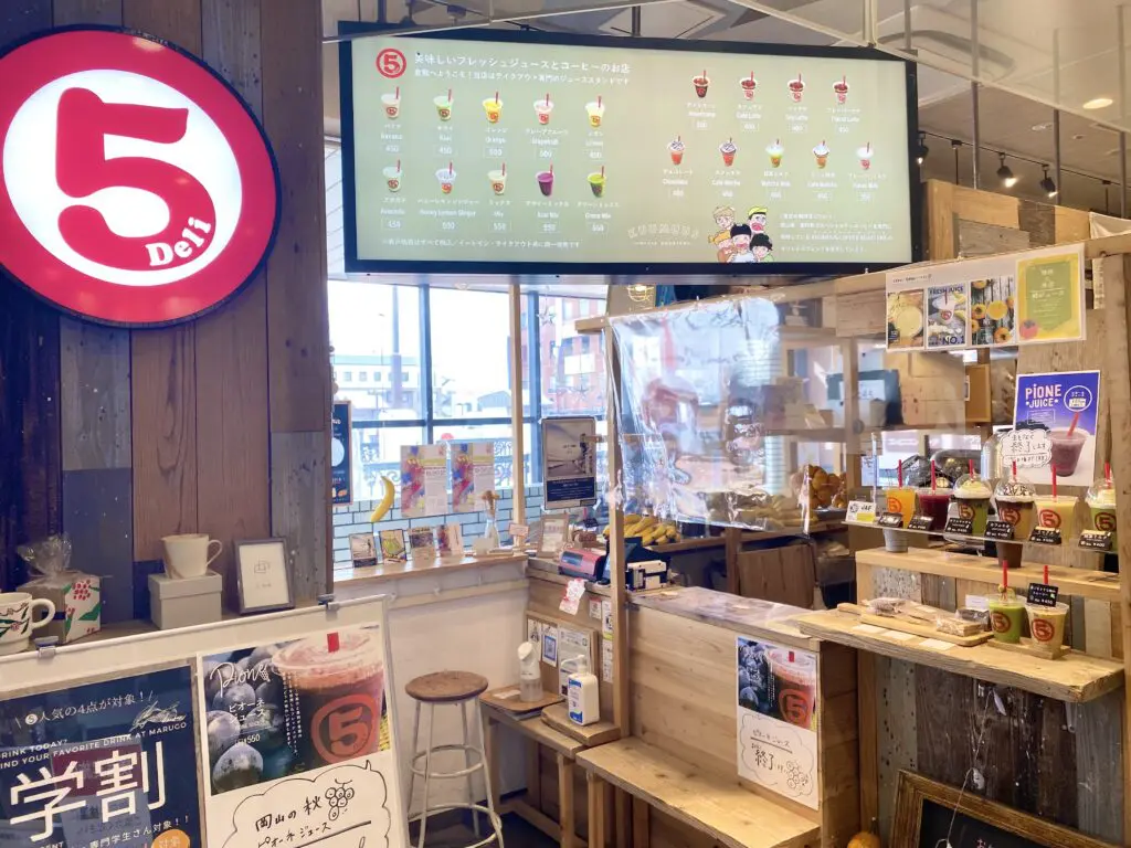 マルゴデリさんすて倉敷店は倉敷駅改札から出て、さんすて倉敷2階→西ビル方面に向かった時にあるフレッシュジュースやコーヒーなどのお店。