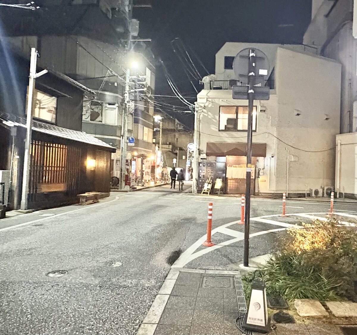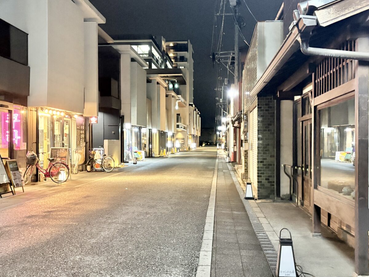 細い路地に入っていくと「Cafe&Bar KAG」さんや「立ち呑みura」さんがある倉敷駅前交差点方面。