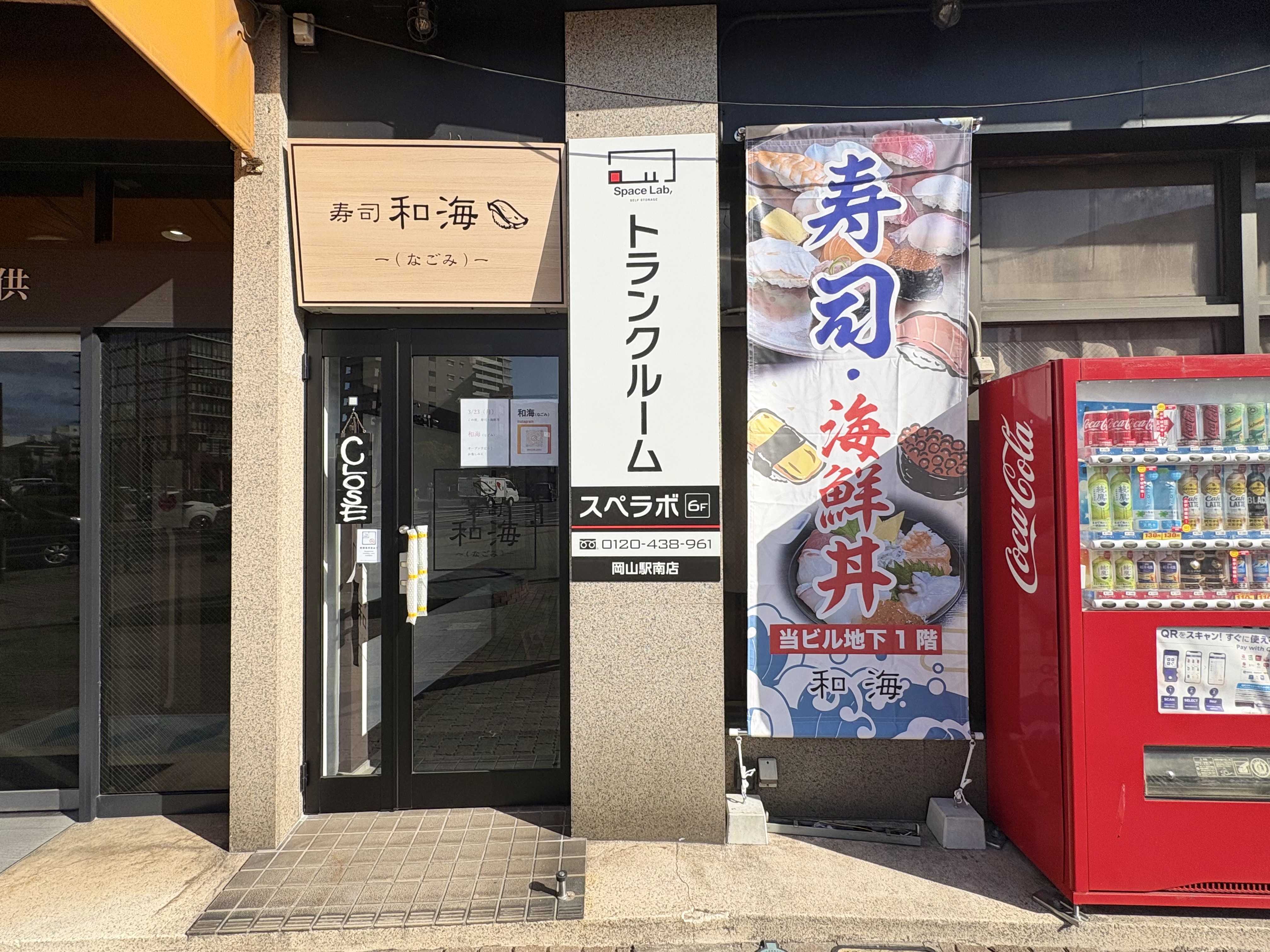 場所は岡山市役所から徒歩1分、「焼肉ひだや 大供店」や「Kitchen Comodo」さんの間です。