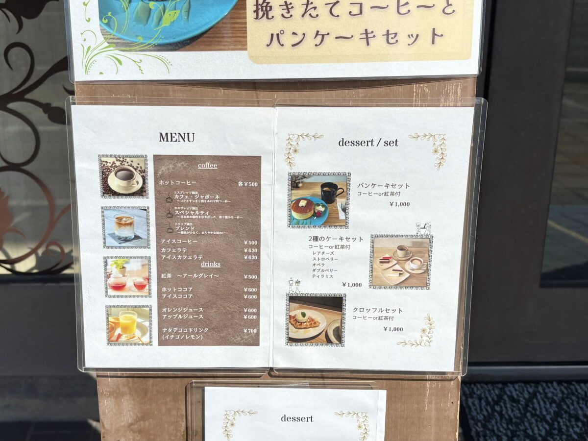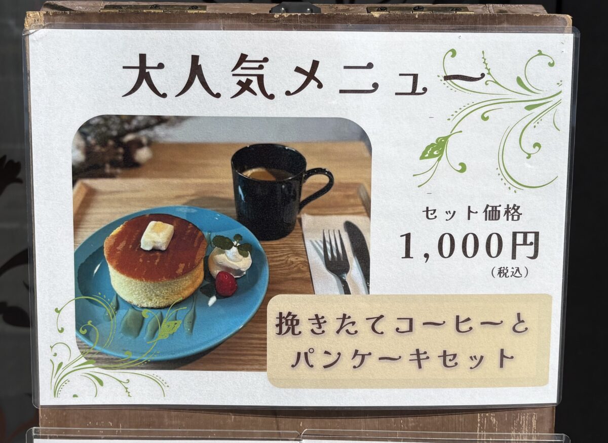 「挽きたてコーヒーとパンケーキセット」。