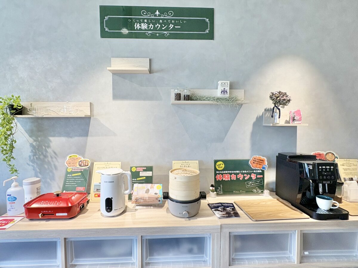 それからエディオンとつながっていることもあって、話題の家電を使ってその場で調理&実食もOK!というちょっと変わったコンセプトでオープンしました。