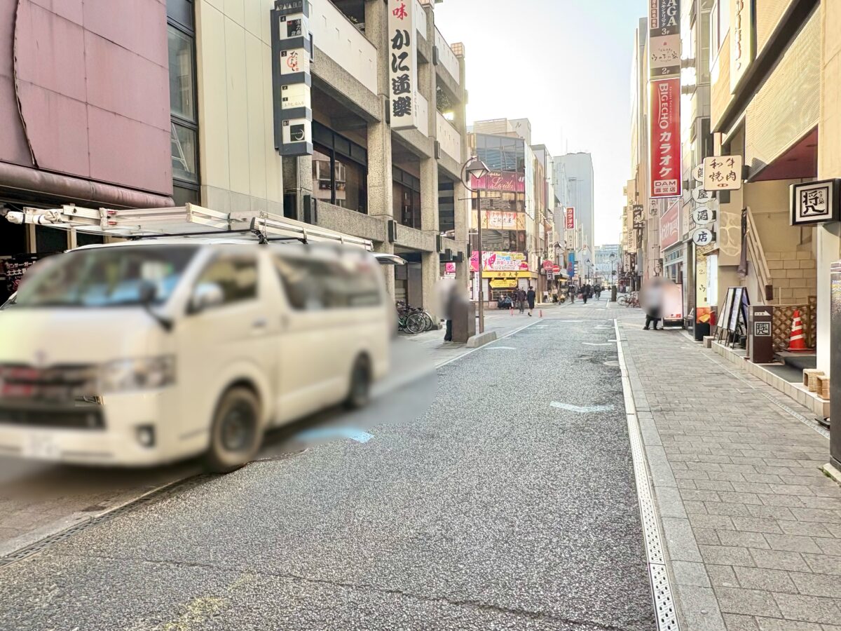 お店から右を見ると「ローソン 岡山本町店」があって西川緑道公園方面。