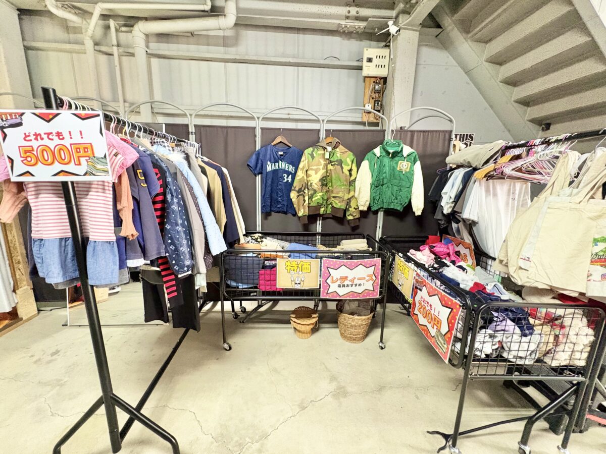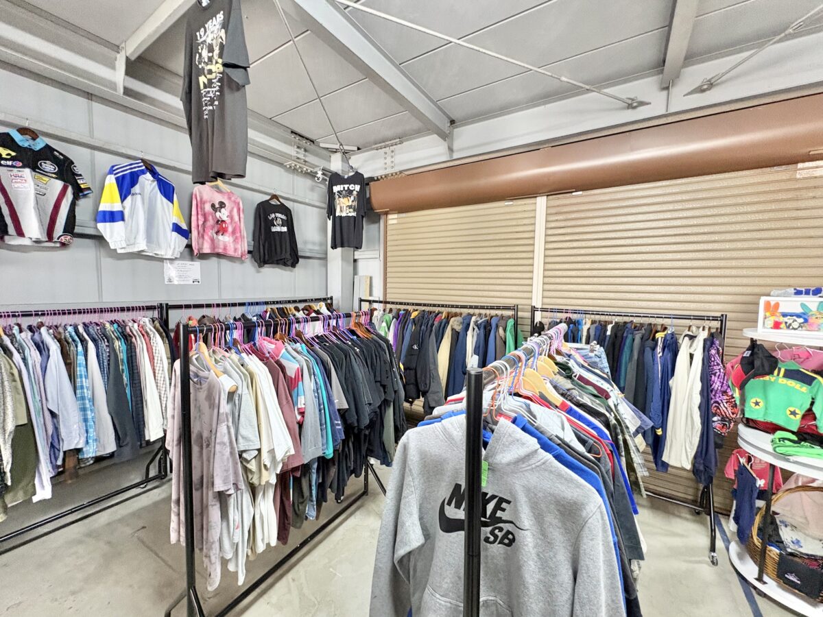 コンセプトは「誰でもふらっと寄れる古着屋」で、子供服や国内レディース服も取り揃え。
