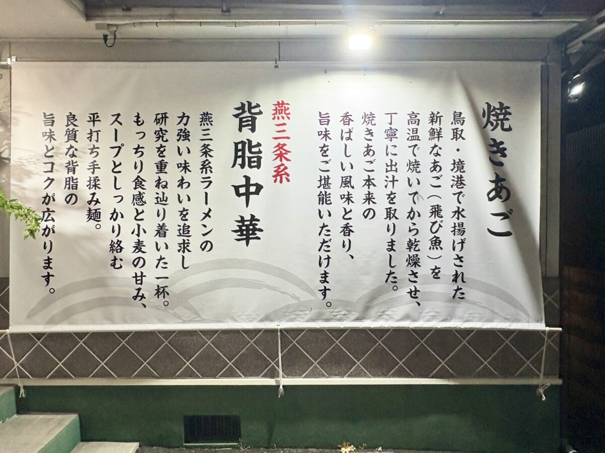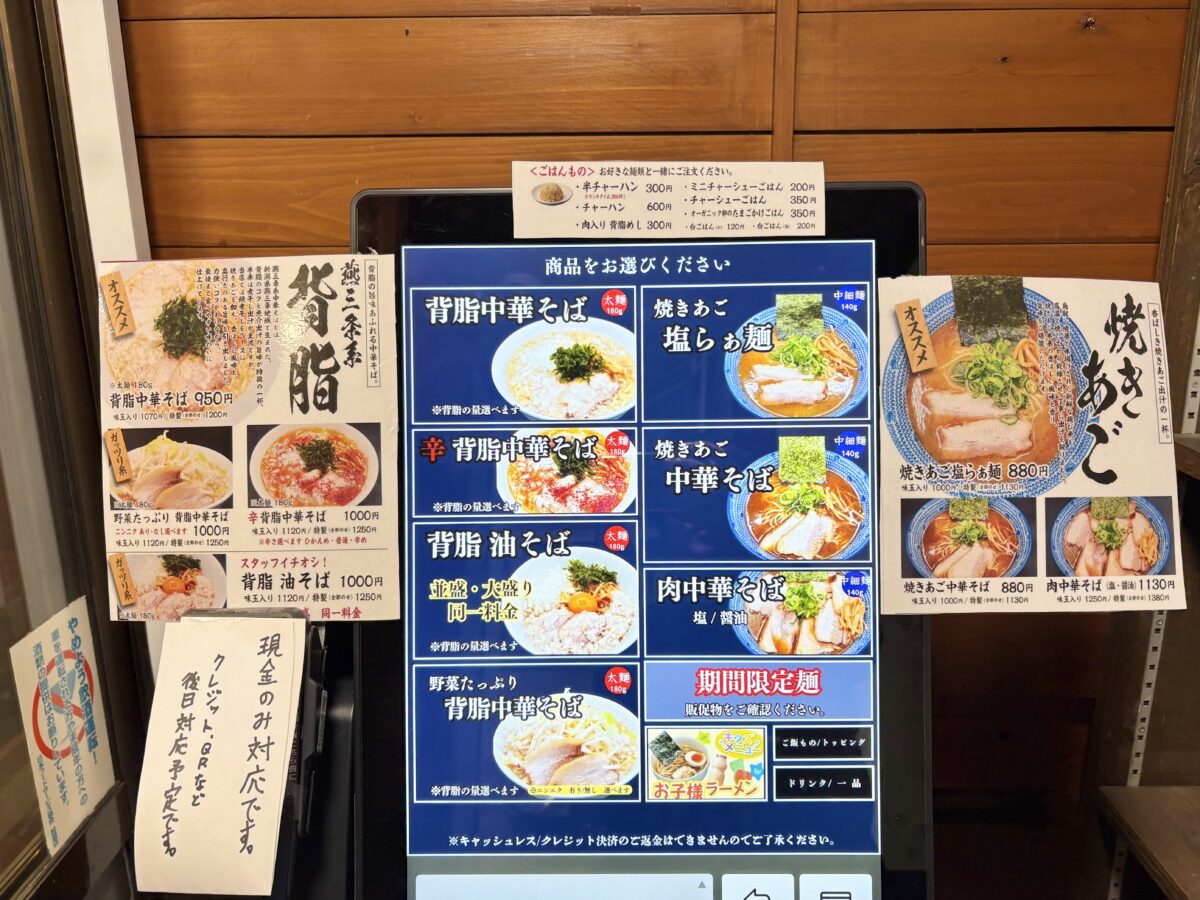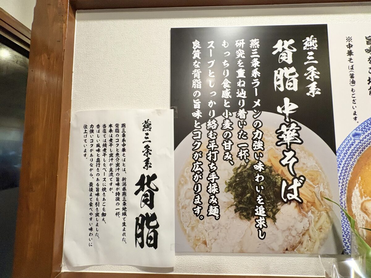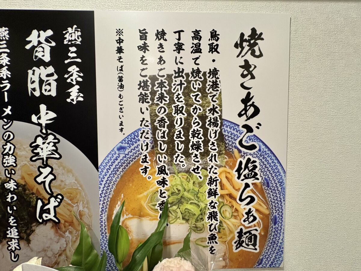 焼きあご塩らぁ麺と燕三条系背脂中華そばの2種類。