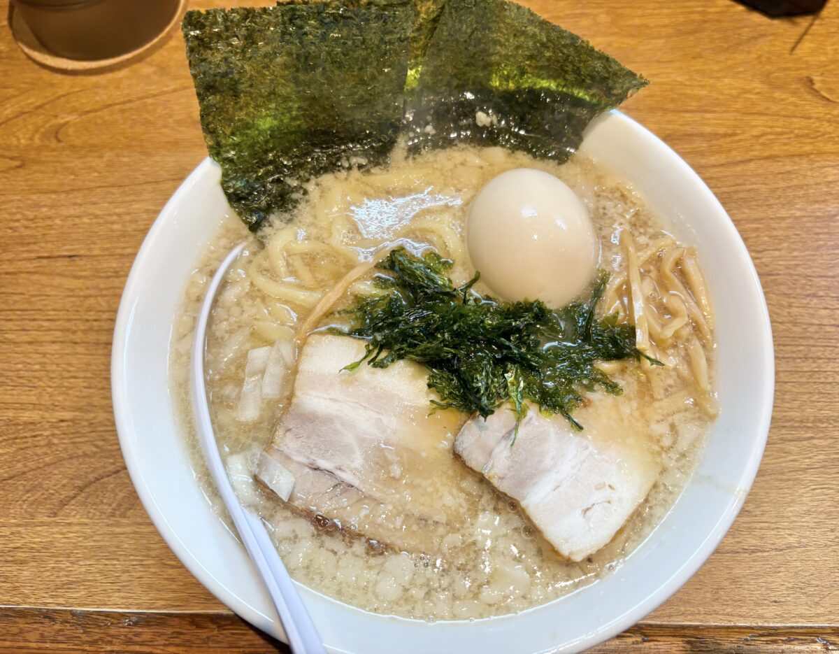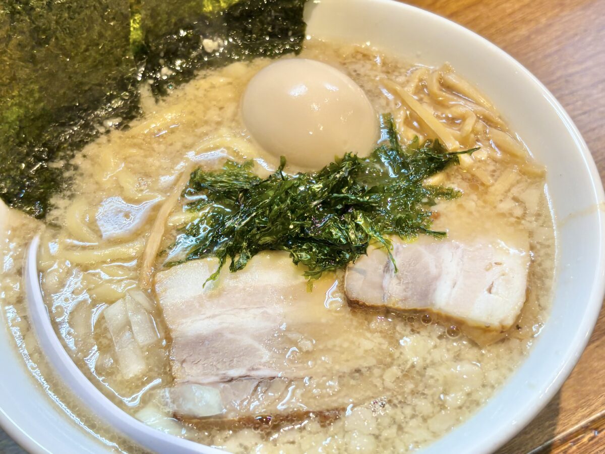そのうちの燕三条系背脂中華そば、煮卵・チャーシュー・のりトッピングです。