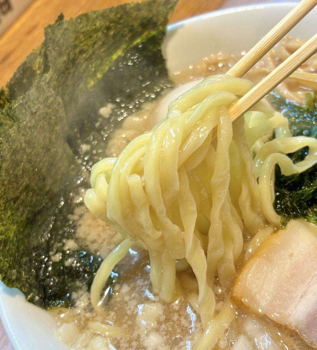 ズズッといくともっちりとコシがあって背脂もよく絡みます。万人受けするすっきりとした後味。