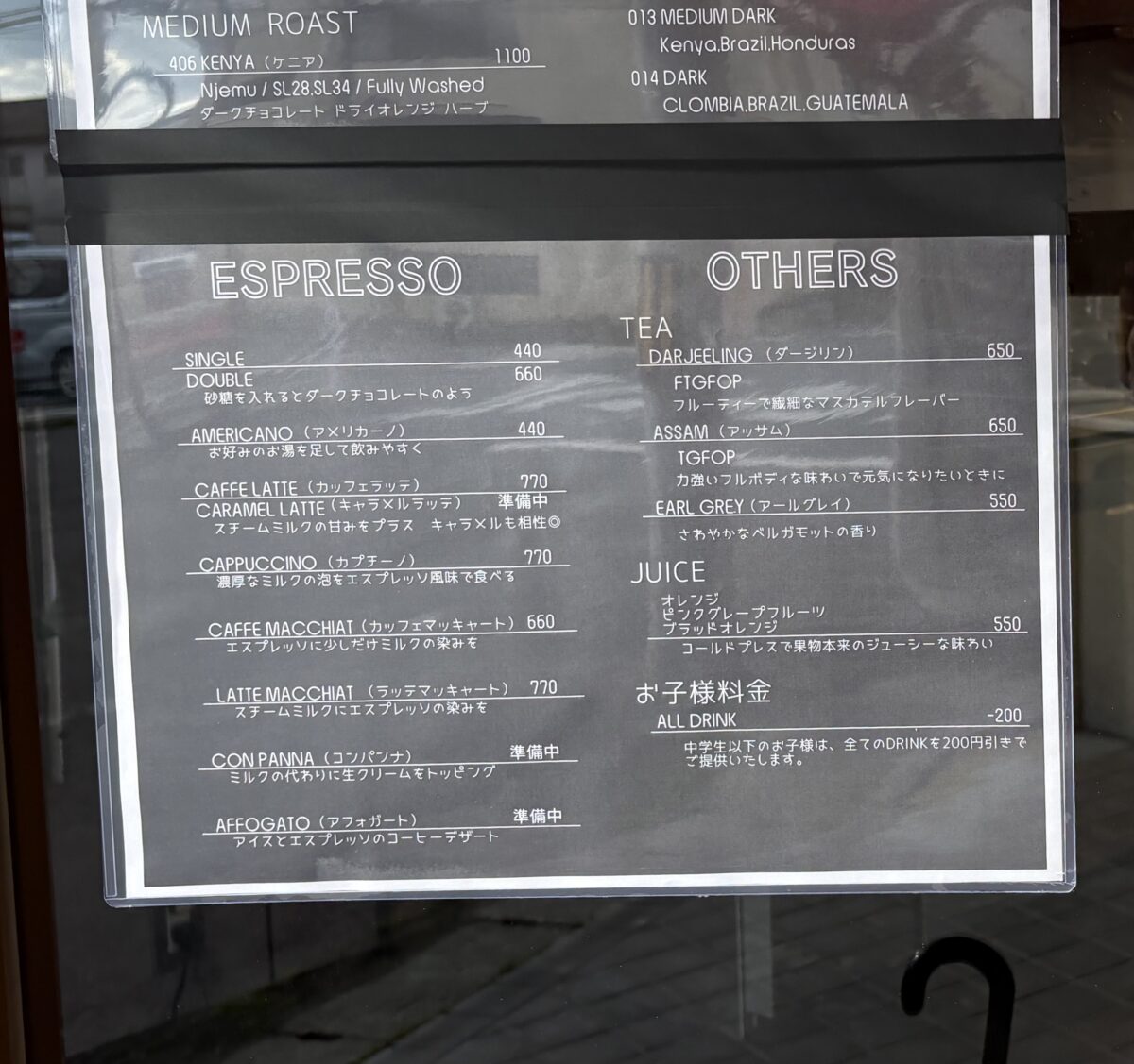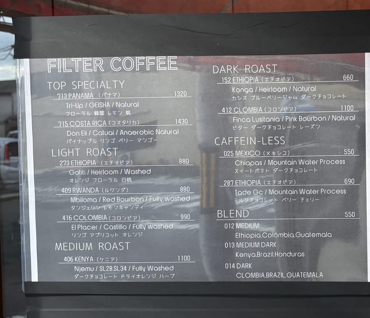 スペシャルティコーヒーメニューもこんなに豊富でした。