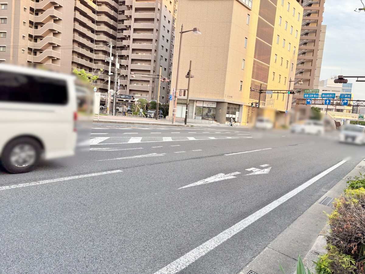 右を見ると清心町交差点が近くにあって、岡山駅西口方面です。