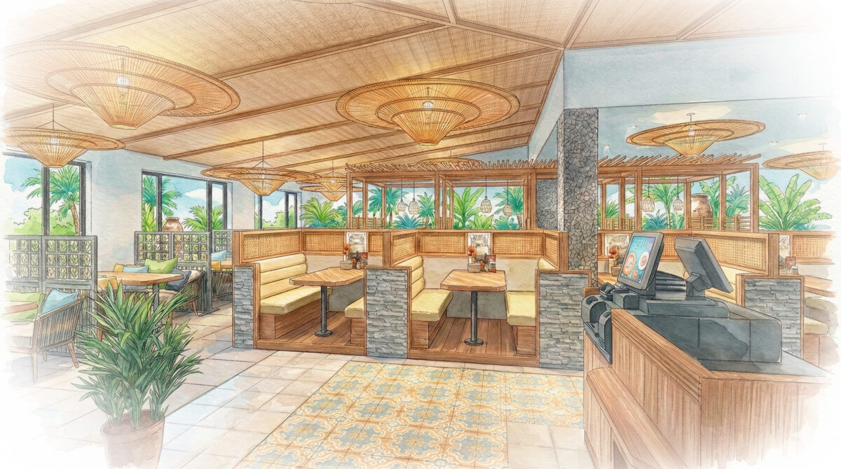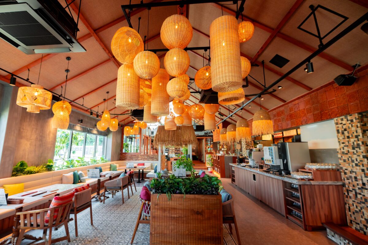 プレスリリースによりますと、店内は大きなラタンのある木の質感を活かしたリゾートホテルの高級感と没入感のあるデザインに。